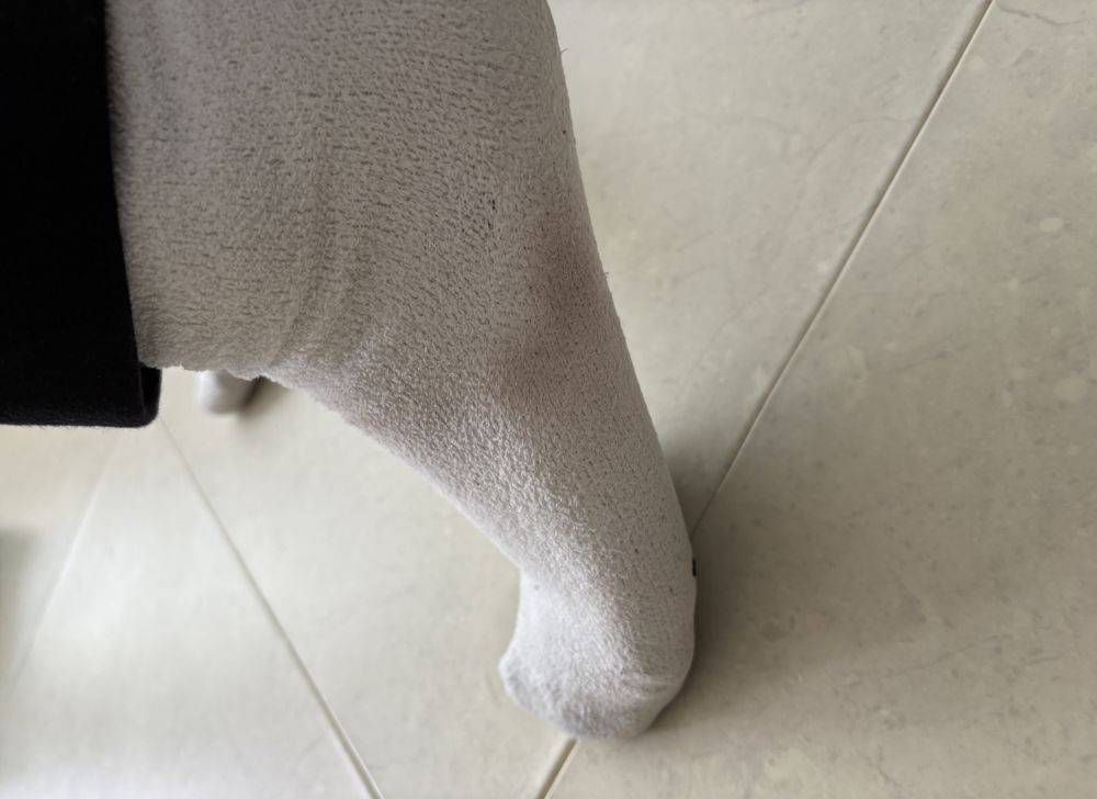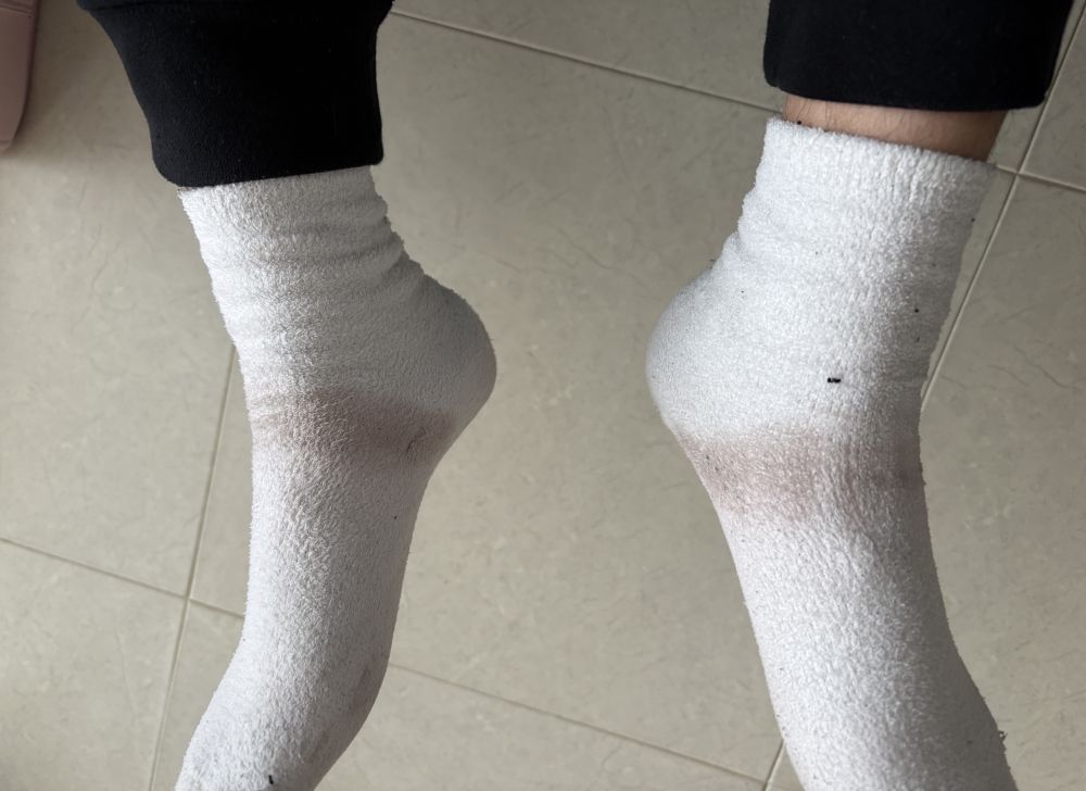 저 믿고 구매해서 선물 했는데 오늘 3시간 신고 나갔다 왔는데 양말에 이렇게 물이 들었어요~!!
